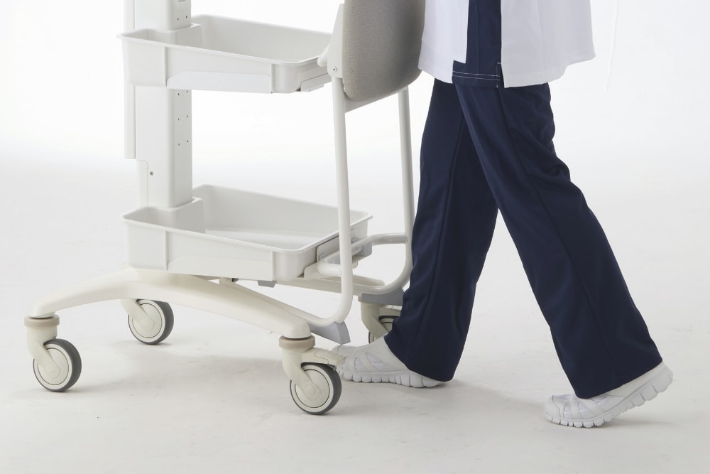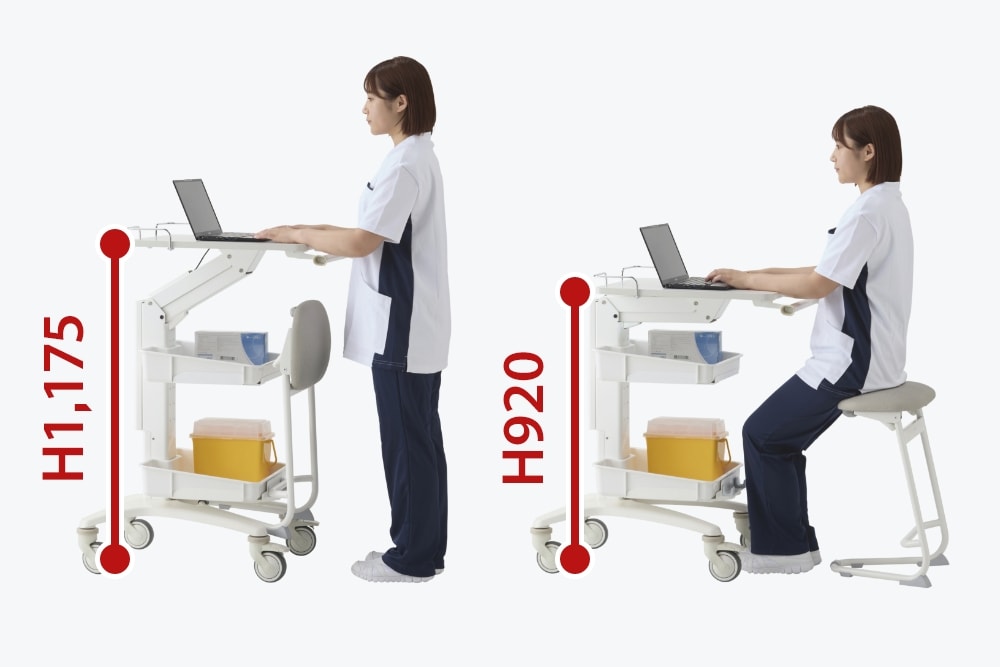 立っても座っても快適に作業でき、患者さまのそばで寄り添いながら落ち着いてケアや記録業務を行えます。