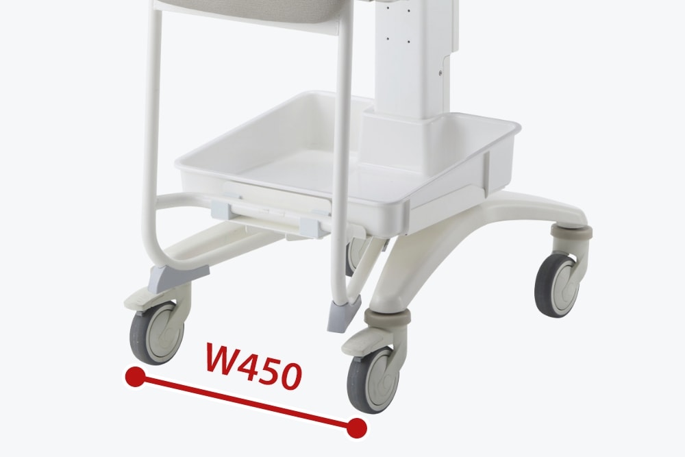 スツールを搭載しても横幅はコンパクト。狭い場所でもスムーズに移動できます。