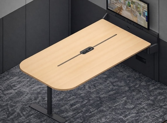 遮音性に優れ、オンラインミーティングに最適な空間です。デスクは幅1,015mmと広めに設計されており、パソコンを置きながら資料を広げることができます。また、ACコンセント3口とUSBポート1口を備えており、電子機器を快適に使用できます。さらに、オプションでモニターブラケットを取り付けることで、デュアルモニターでの作業も可能です。