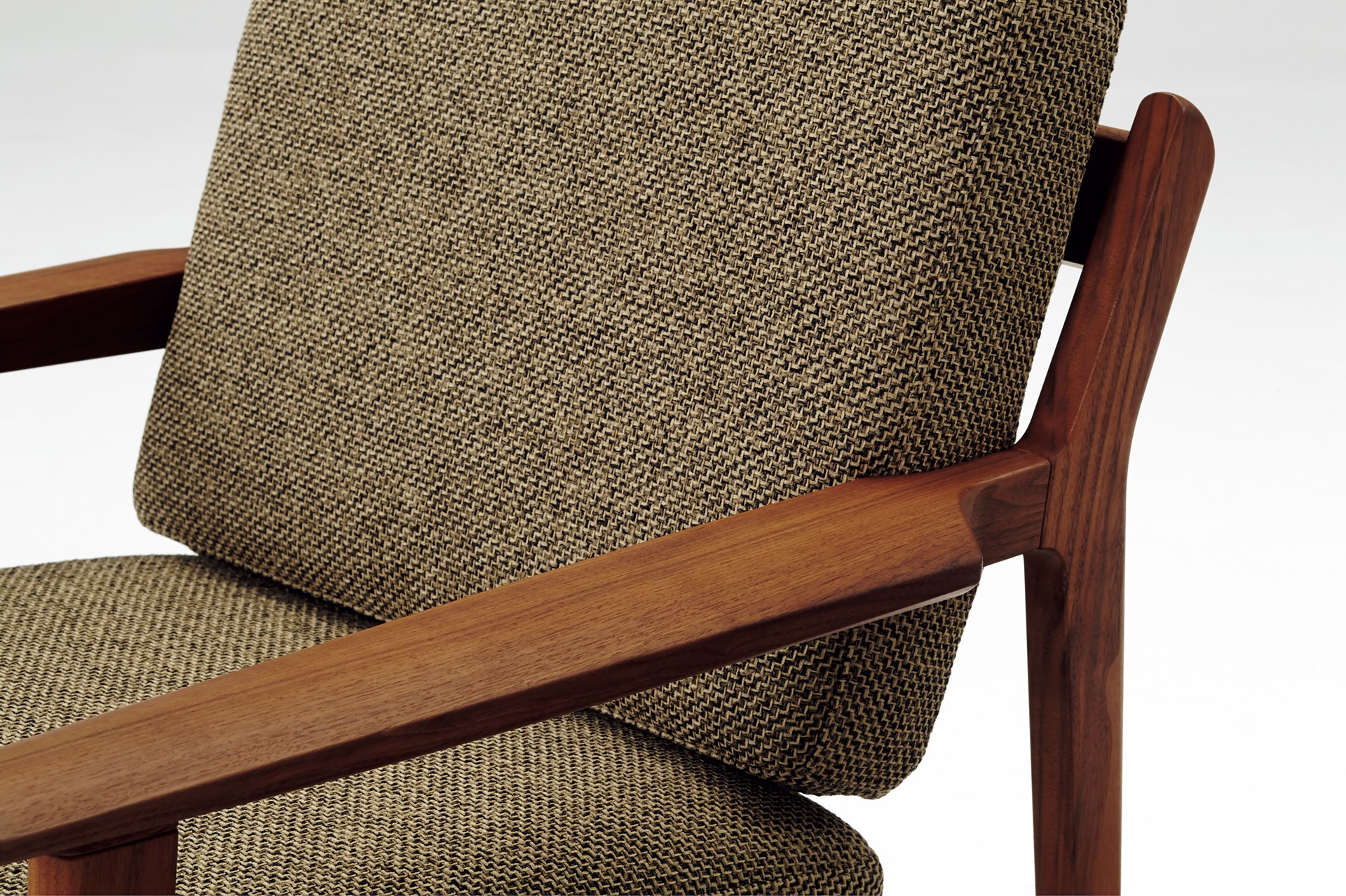 座には布バネ(ハイテンションメッシュ)を採用。弾力性のある快適な座り心地です。 ※別注でウォールナット材も承ります。詳しくはお問い合わせください。