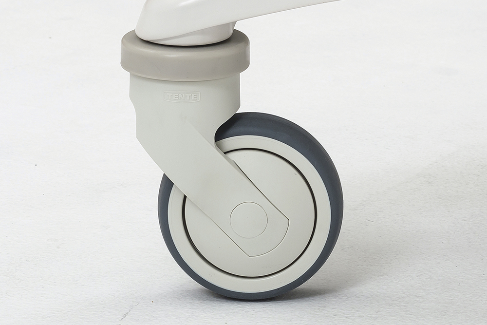 キャスターには衝撃を和らげる軟質ダンパーを装備。