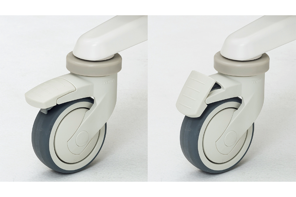 足で踏んでロック・解除ができる使いやすいキャスターを採用。